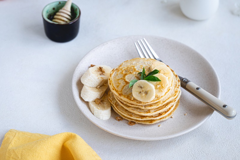 Menu MPASI homemade berikutnya ada pancake pisang yang cocok untuk digunakan si kecil belajar mengunyah. Haluskan pisang yang sudah matang kemudian campur bersama tepung terigu, baking powder, susu UHT, gula, dan sedikit garam. Aduk merata lalu cetak adonan pancake di atas teflon yang sudah dilelehi mentega.